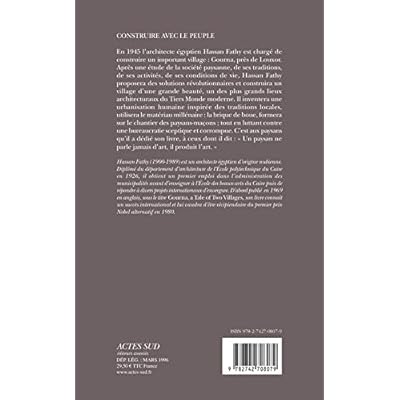 En 1945 l'architecte égyptien Hassan Fathy est chargé de construire un important village : Gourna, près de Louxor. Après une étude de la société paysanne, de ses traditions, de ses activités, de ses conditions de vie, Hassan Fathy proposera des solutions révolutionnaires et construira un village d'une grande beauté, un des plus grands lieux architecturaux du Tiers Monde moderne. Il inventera une urbanisation humaine inspirée des traditions locales, utilisera le matériau millénaire : la brique de boue, formera sur le chantier des paysans-maçons ; tout en luttant contre une bureaucratie sceptique et corrompue. C'est aux paysans qu'il a dédié son livre, à ceux dont il dit : "Un paysan ne parle jamais d'art, il produit l'art."